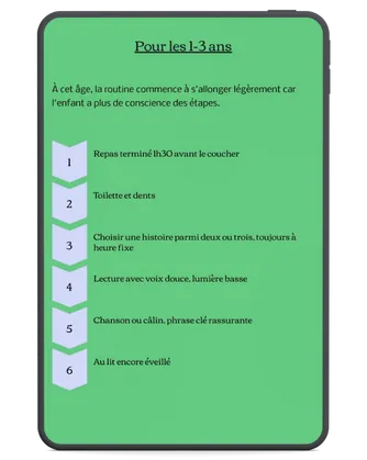 Routines adaptées à chaque âge (0-6 ans) : Des séquences concrètes et faciles à appliquer selon l’âge de votre enfant.
