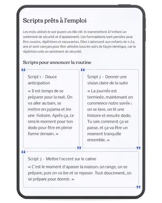– Des scripts tout prêts pour ne plus improviser à chaque coucher